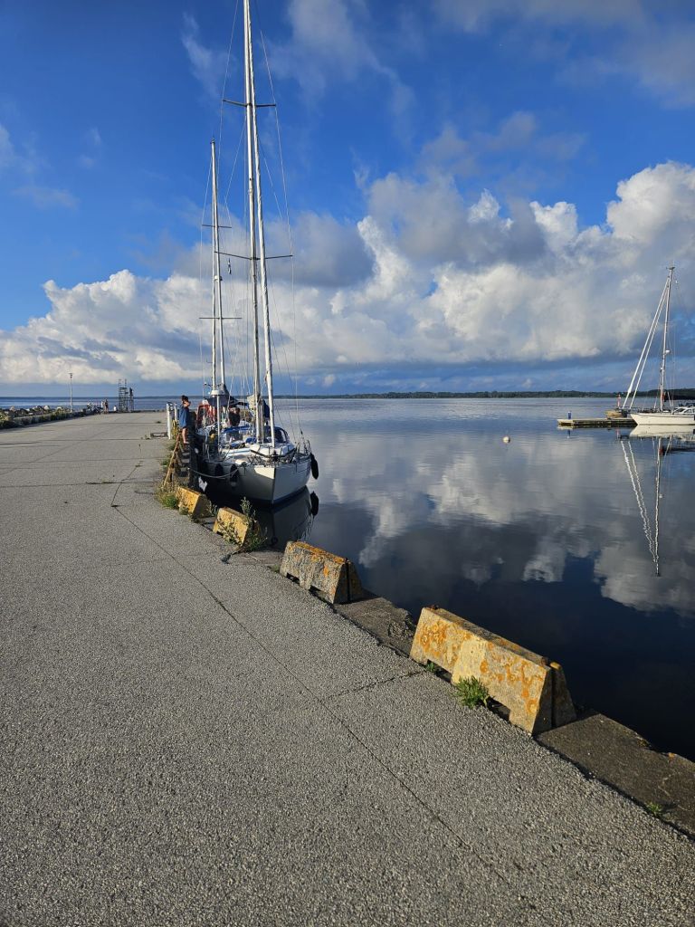 Aamulla tuuli oli tyyntynyt Kärdlassa, mutta ilma oli täynnä usvaa, ja tiesimme, että edessä voisi olla taas sade- ja ukkoskuuroja. Silti oli selvää: emme jää satamaan toiseksi päiväksi