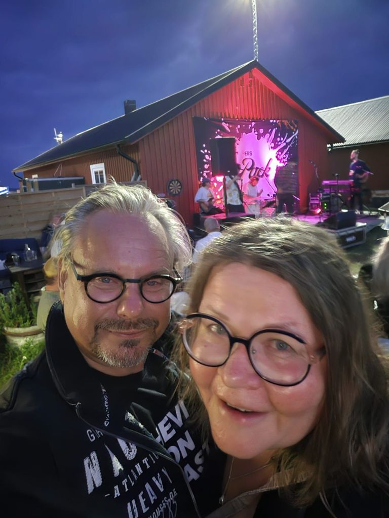 Saunasta siirryttiin suoraan barbecue-iltaan. Cobb-grilli pääsi töihin: ensin pizzaa ”keittiön terveisenä” sitten grilliin lihaa, perunoita, juustoa ja kesäkurpitsaa. Täydellistä kesäruokaa hyvässä seurassa. Ilta jatkui myöhään yöhön, Lillholmenin uudessa ”Majasessa”. Tämä ilmeisesti tämän tilan nimi🤔, näin päättelin. Ilta pimeni, mutta tunnelma oli täynnä valoa, iloa ja naurua.