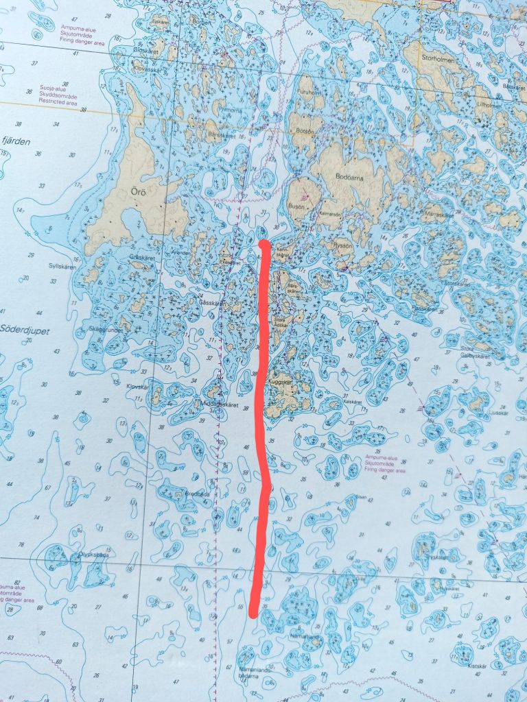 Aloin miettiä, pitäisikö taas alkaa tehdä karttoihin omia merkintöjä kuten aikoina ennen plottereita. Silloin merkitsin käkkärämäntyjä eli yksinäisiä saarella nököttäviä puita sekä muita hyviä suuntiman apuja. Plottereiden aikakaudella tuntuu välillä, että henkilökohtainen merikartta on kadonnut.