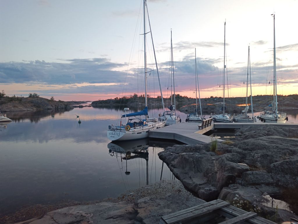 Ådskäriin saavuimme jälleen illan viimeisinä. Rantautuessa tapahtui pieni lipsahdus, kun poijusta kiinnityttiin vahingossa väärän laituriin – paikkaan, joka olisikin ollut kylkikiinnitystä varten. Mutta ei hätää – ystävälliset kanssaveneilijät auttoivat kääntämään Tosirakkauden oikeaan asentoon, ja rannan nuoriso vieläpä souti ystävällisesti irti.