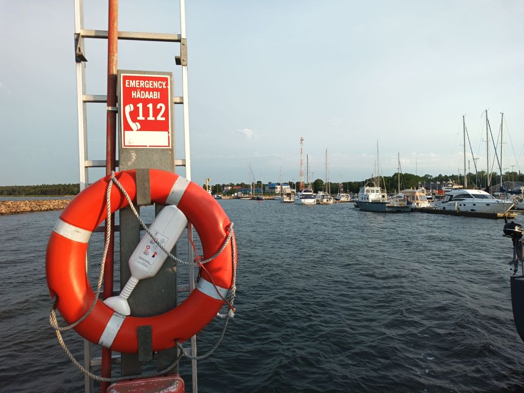Kun saavuimme Kärdlaan, huomasimme heti rajavartioston ja poliisin yhdistetyn partioveneen lähtevän meitä kohti. Kysymykset olivat ystävällisiä mutta napakoita: olimmeko suomalaisia, montako henkilöä veneessä, mistä tulimme ja kuinka kauan olimme merellä ja lopulta vielä onko kaikki hyvin. Vastaukset kelpasivat – ja saimme vielä hyvät toivotukset turvalliseen satamaan.