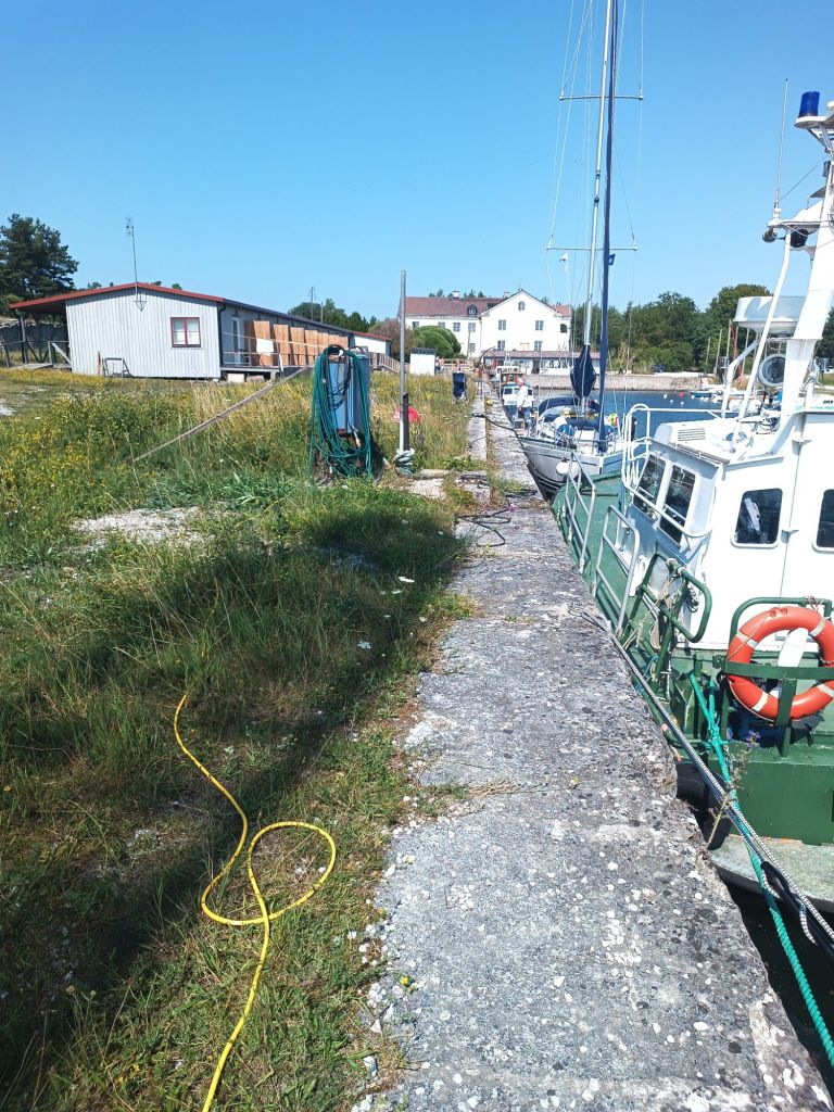 Kasnäsissä meitä odotti positiivinen yllätys: polttoainetta ja vettä sai nyt ulkolaiturista – ei enää mutkittelua sataman sisään. Samasta pisteestä löytyi myös septin letku ja avulias nuori satamapoika, joka jopa tarjoutui viemään roskamme puolestamme. Ihan huippupalvelua!