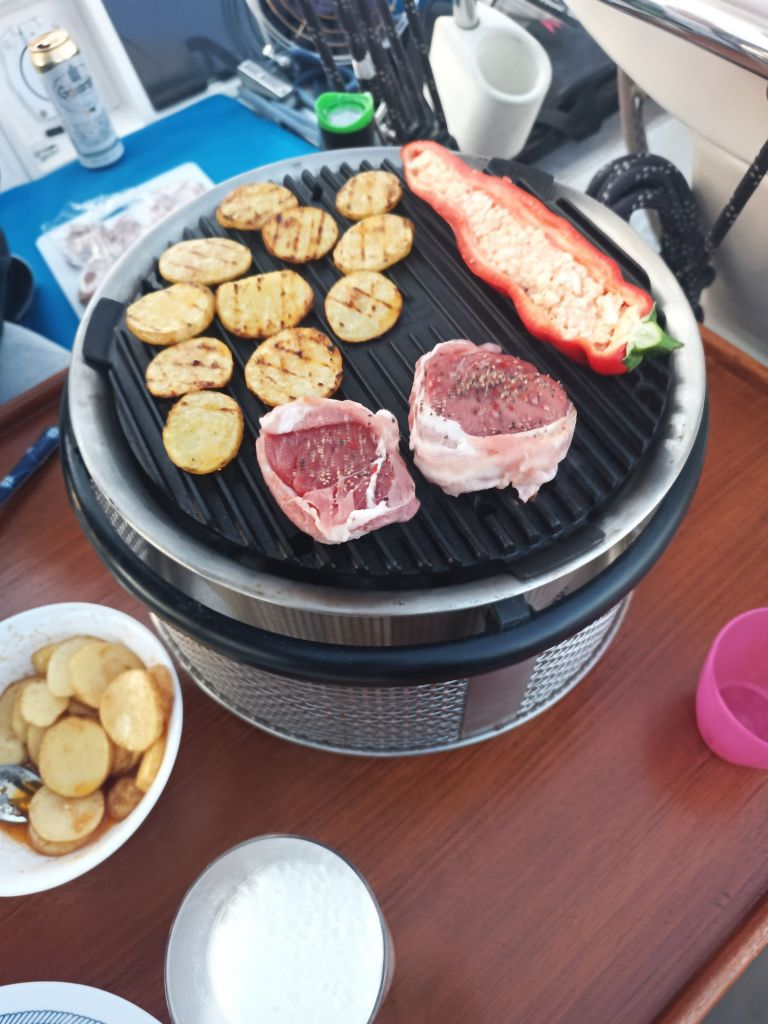 Veneen keittiö oli jo sulkeutunut saapumisillalta illalta – 😂 – joten mentiin ulkoruokintaan.
