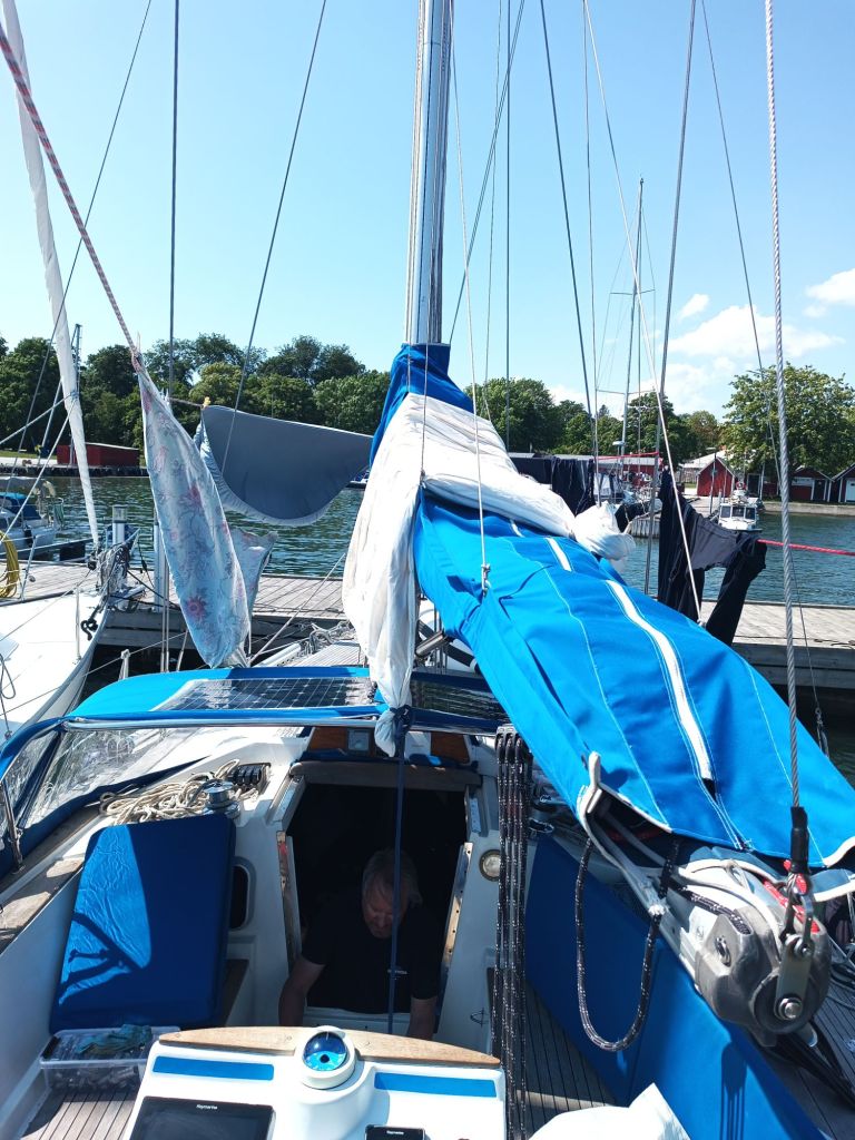 Aamupäivällä nostimme purjeet. Kevyt sivumyötäinen vei meitä kohti Kasnäsiä, jossa oli tarkoitus tankata vettä &dieseliä, tyhjentää septi ja käydä kaupassa. Välillä etenimme mainiosti – välillä lilluttiin vain kevyessä tuulessa. Hyvä hetki laittaa vielä ne ”hyvin pakatut tavarat” paikoilleen. Mutta fiilis: nyt oltiin menossa. Nyt alkoi loma.