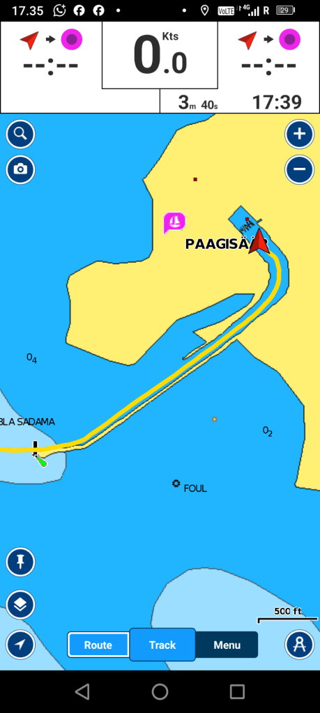 Saavuimme satamaan juuri oikeaan aikaan. Tuuli oli vielä maltillinen, ja hyvillä syvyystiedoilla uskalsin ajaa syvemmälle satamaan.