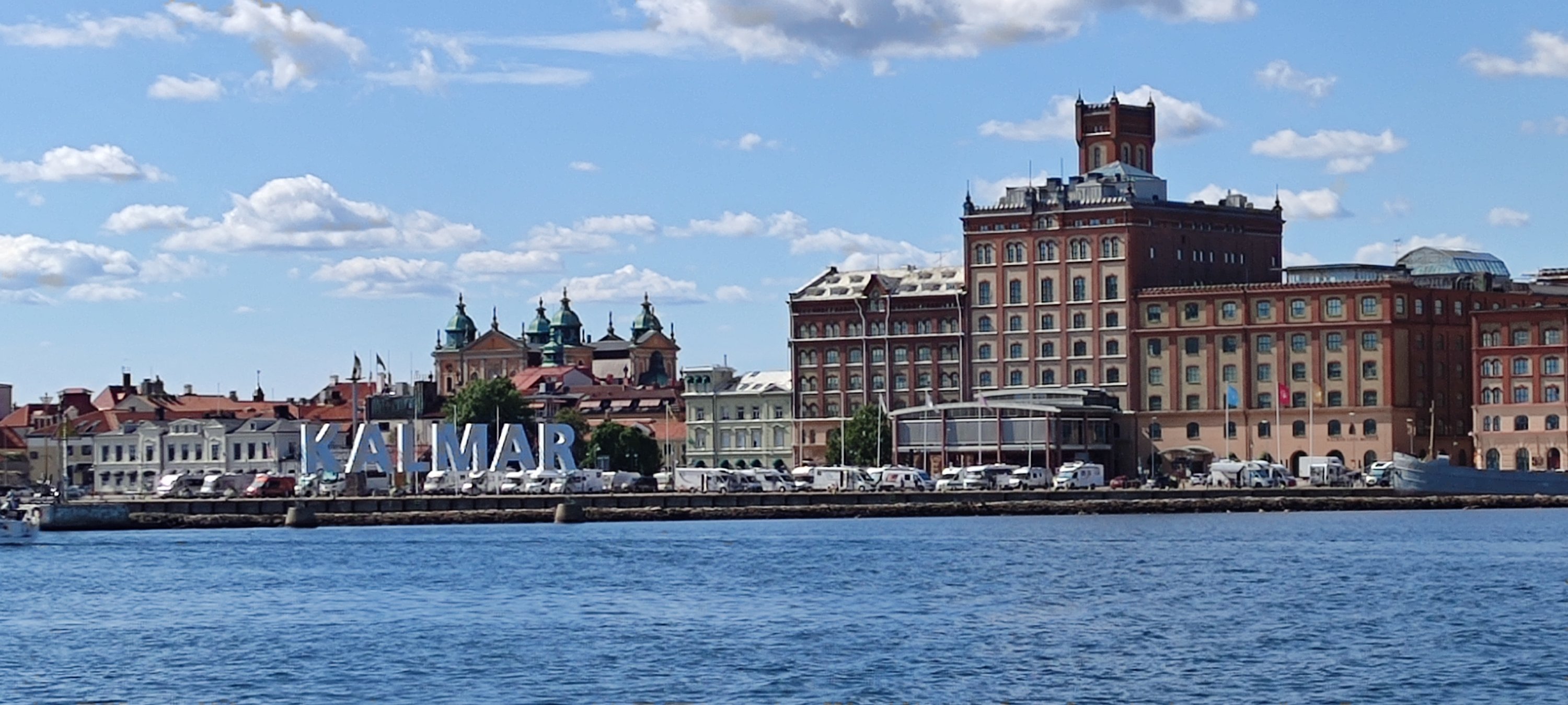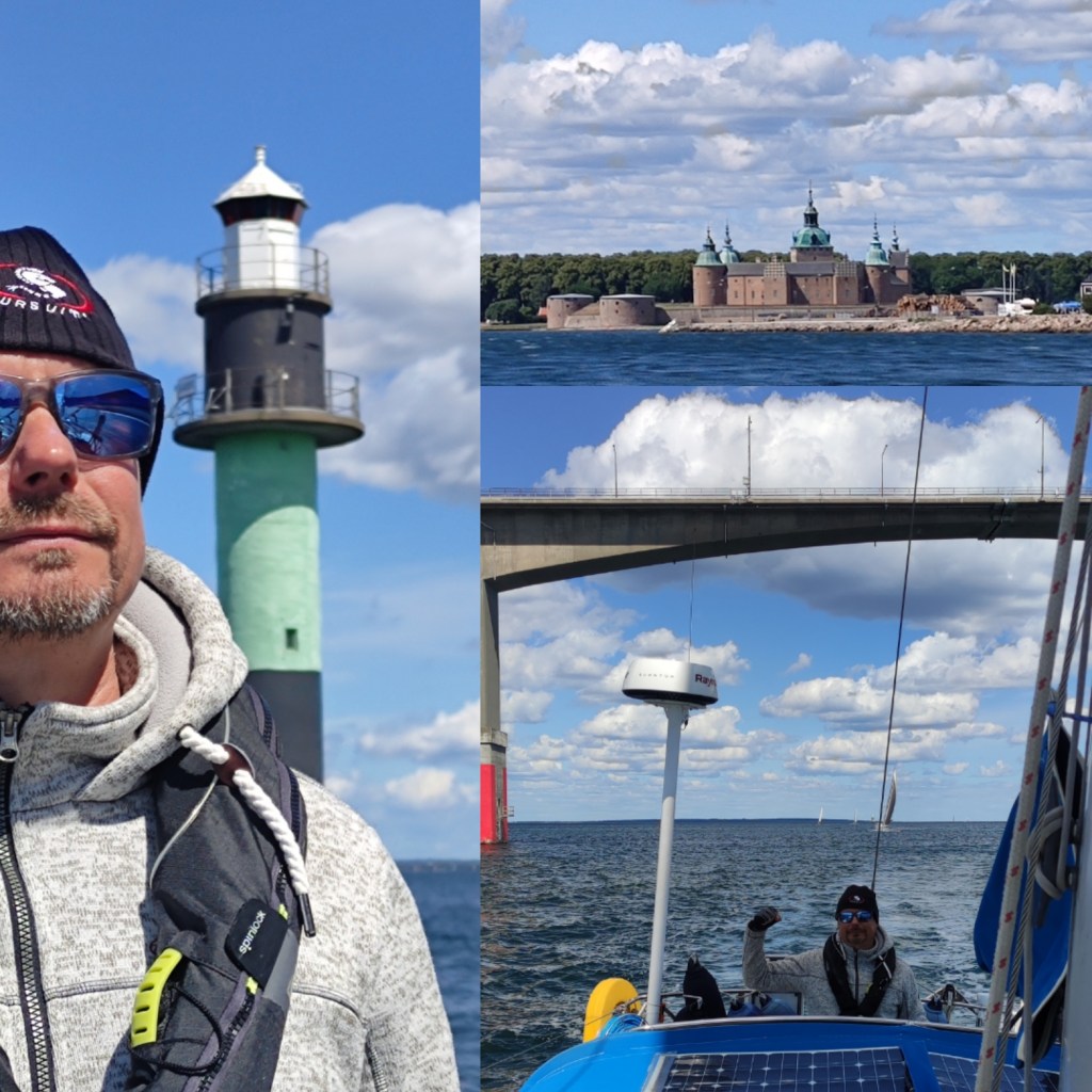 Tiedä mihin säätietoon sitten luottaisi, aamupäiväksi ennustettu varsi kevyt tuuli olikin muuttunut varsin napakaksi länsituuleksi. Hyvä meille, sen kuljettamana varsin vauhdikkaasti eteenpäin. Pullein purjein alitimme Öölannin sillan ja tällä kertaa vain vilkutimme Kalmarille kun ohitimme sen.