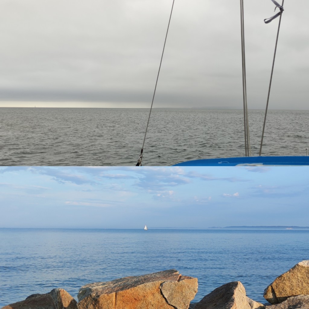Aamupuuhien jälkeen sadepilvien peittämällä merelle. Nyt mennään Puolaan👍. Usedormin viimeisen ”heinäsaaren” jäätyä taakse saimme myös enemmän vettä kölin alle. Stettiner Haffetilla kaiun luvut alkoivat kolmosella ja nelosella. Pääsimme myös purjehtimaan ja hienosti kulki, ajoittain jopa yli 8 solmua.