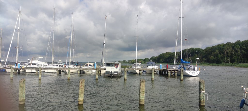 Sunnuntaina jokea alas yhdessä monen muun kanssa… 40 minuuttia 4solmun vauhtia😯 ja näköalana kaislikko😂🙈. Tyynellä merellä konetusta kohti Peenemundea. Merellä todellakin ruuhkaa, hieno ilma saanut kaikki liikkeelle 👍⛵. Satamamaksu Peenemunde Sudissä 19€, sisälsi suihkumaksun kahdelta.