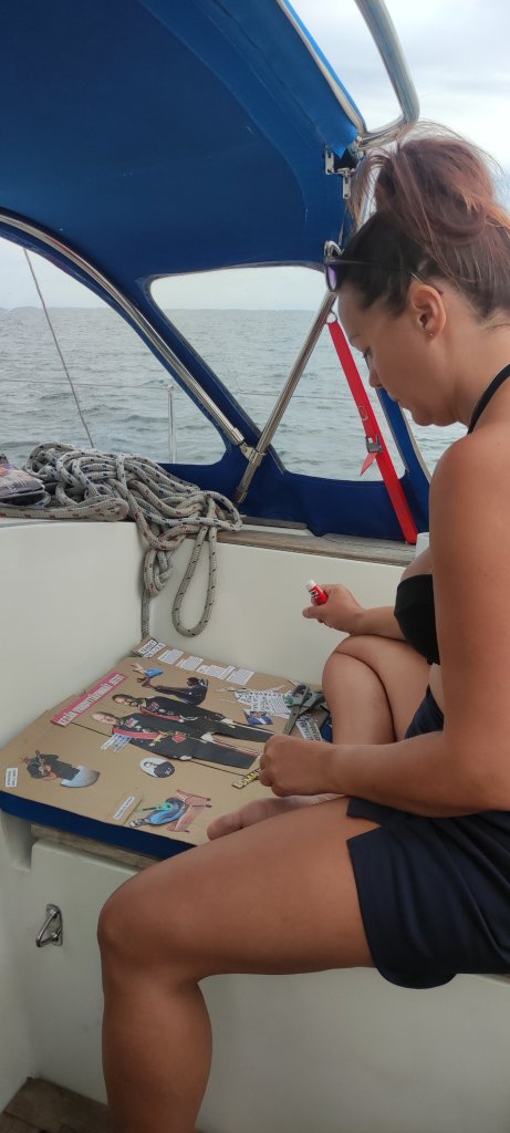 Svanekenille sanoimme heipat varhain keskiviikko aamuna. Nyt suuntana Saksan Sassnitz. Aamupäivän konetimme tyvenessä, mutta sen tiesimme jo ennakolta. Puolilta päivin saimme odotetusti tuulta purjeisiin ja siitä iltaa kohden tuuli vain voimistui. Ihanaa menoa bikineissä lähes koko päivän☀️ Sain tehtyä puuhdetöitä, joita niin rakastan. Nyt on rikkinäiset fendarisuojat ommeltu ja virkattu sekä ommeltu muutamia hullunpuuhdetöitä. Lennätimme myös dronea, harjoitusmielessä. Valitettavasti viimeisellä kerralla kone koki nenälaskun suoraa nostosta ja nyt siitä on lasi rikki. Varaosia siis tilaamaan😯.
