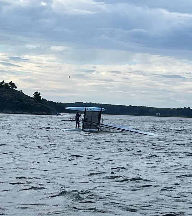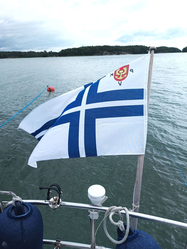 Aamulla ohjelmassa kakkakarusellia, joka olikin todella vekkulia riuhtovassa tuulessa. Selvittiin kuitenkin hienosti. Reivattu iso ylös jo lahdessa ja sitten merelle. Nyt on viuhunaa, tuulta 12-16m/s. Saamme mittariin kesän ennätyksiä, korkein nähty luku oli 9,6 solmua. Onneksi olemme harjoitelleet lukuisia jiippejä👍. Kova ja puuskainen takatuuli oli haastava seuralainen ja yhdessä hallitussa jiipissä katkesi sitten ykkösreivin takaliikki. Päätimme hakeutua saaren suojaan rakentamaan kakkosreiviä. Gripön saari Degerbyn länsipuolella antoi hyvää suojaa tähän.