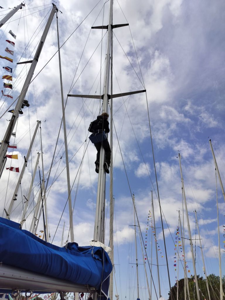 Kevätkunnostukset vedettiin tällä kertaa lyhyen kaavan mukaan: vedenalaisessa osassa muutama paikkaus, vähän laminointia, pientä lakkauspuuhaa ja teak-kannen viimeistelyhiontaa telakka kauden aikana korjatulle kohdalle. Kyljet vahattiin tietysti. Mastoon kiinnitettiin erityistä huomiota ja yllätys, kaikki valot toimivat 👍. Puomiin teetettiin uusi mastonliitospala vanhan murtuneen tilalle sekä vaihdettiin kuluneet pylpyrät. Nyt toimii!