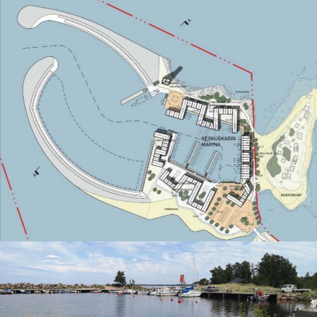 Tässä hyvä kuva satamasta, jossa näkyy myös uufet laiturit ja levennetty väylä. Kuva Peterzensin Fb-sivuilta