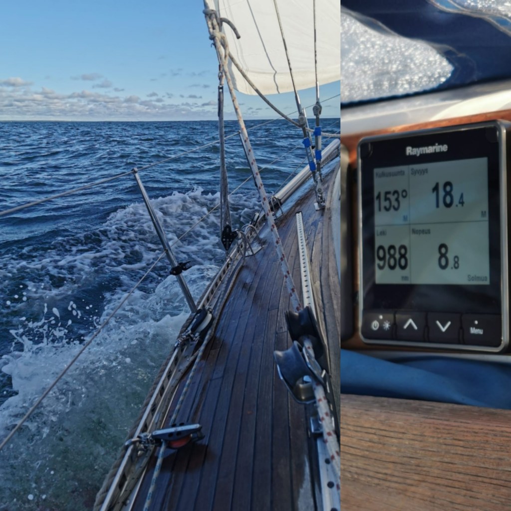 Sunnuntaina on loma puolessa välissä ja me jatkamme kohti etelää. Luvassa luovia avomerellä alle 10m/s tuulessa…