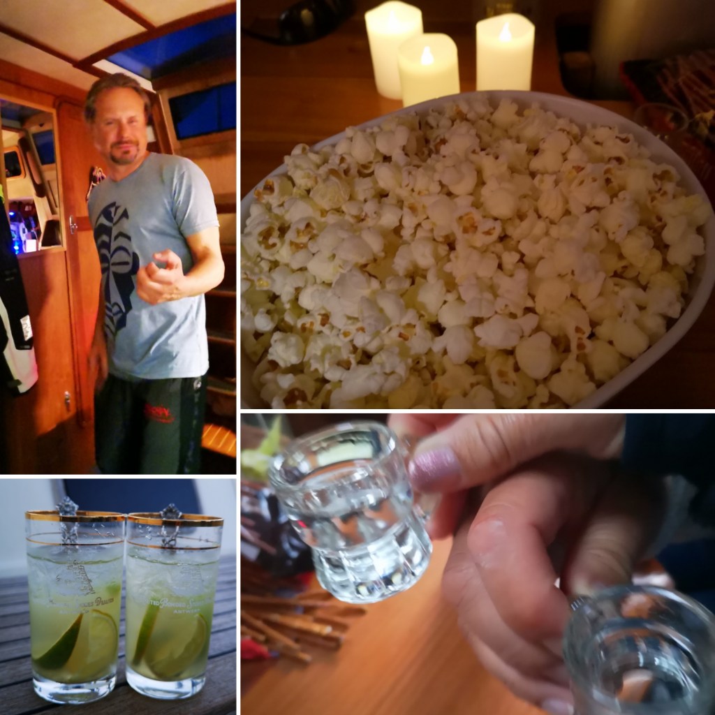 Kaksi illanviettoa on kulunut piukasti salongissa, sateen piiskatessa kantta. Nyt on tehty popcorneja ja katsottu leffaa, vene-elämä on melko erilaista kuin 20 vuotta sitten👍.