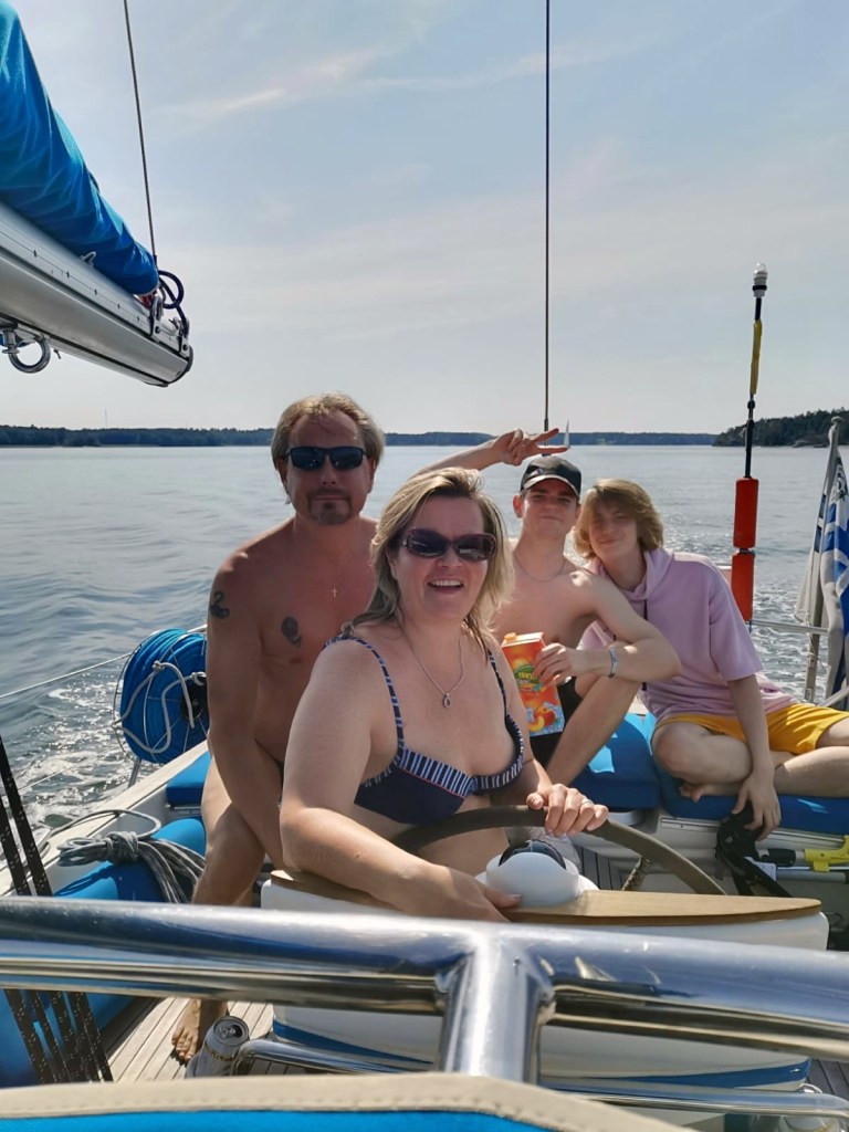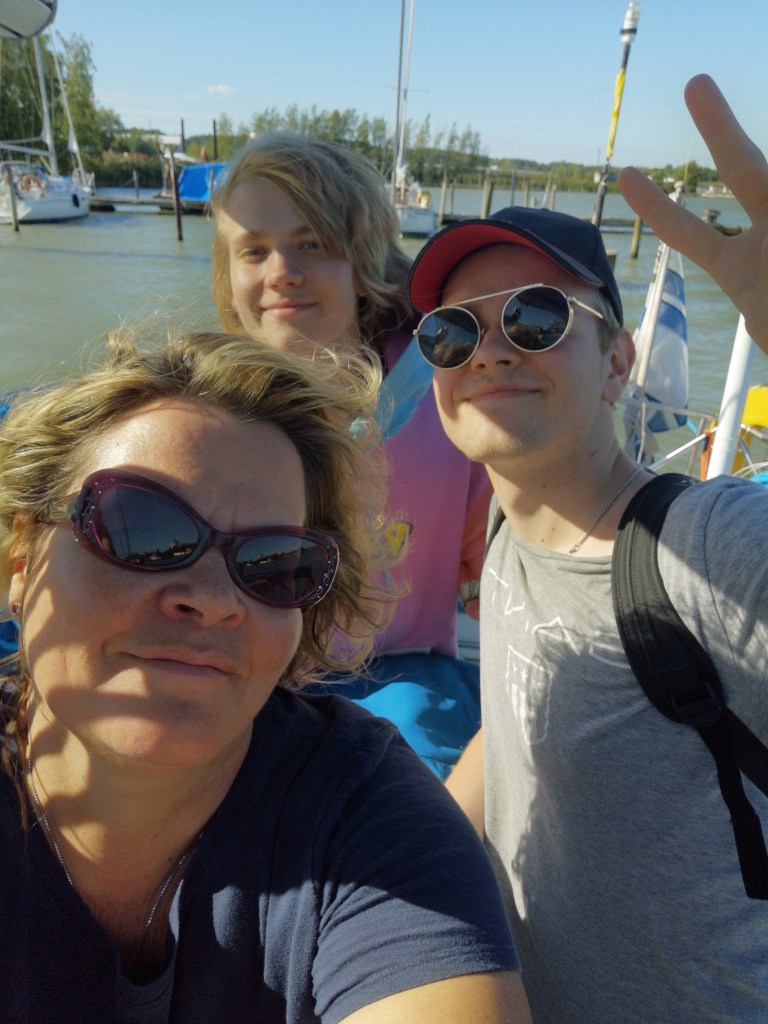 Nyt mukana Petrin teinit, joille purjehdus ei niin tuttua olekkaan. Kesäloman kalojenruokkimispäivän jälkeen saamme heitä kyllä nykyään helpommin kannelle. Puhelimen irtoaminen kädestä vaatisi vielä jotain enemmän.