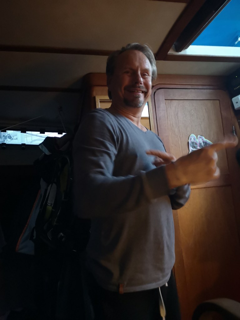Perjantaina ei tarvinnut nousta tietääkseen, että tulee kovin. Sellaista mastojen pauketta kuului laiturilta. Onneksi Selenalla oli jo neljä köyttä laiturissa ja maston kaikki köydet sidottu tiukkaan. Lämppärin henkäillessä lämpimästi oli sisällä oikein letkeää. Aloitimme päivän äänenavaus puhelulla Roopelle – synttärisankari 19v oli onneksi jo herännyt, ettei pelästynyt lauluamme.