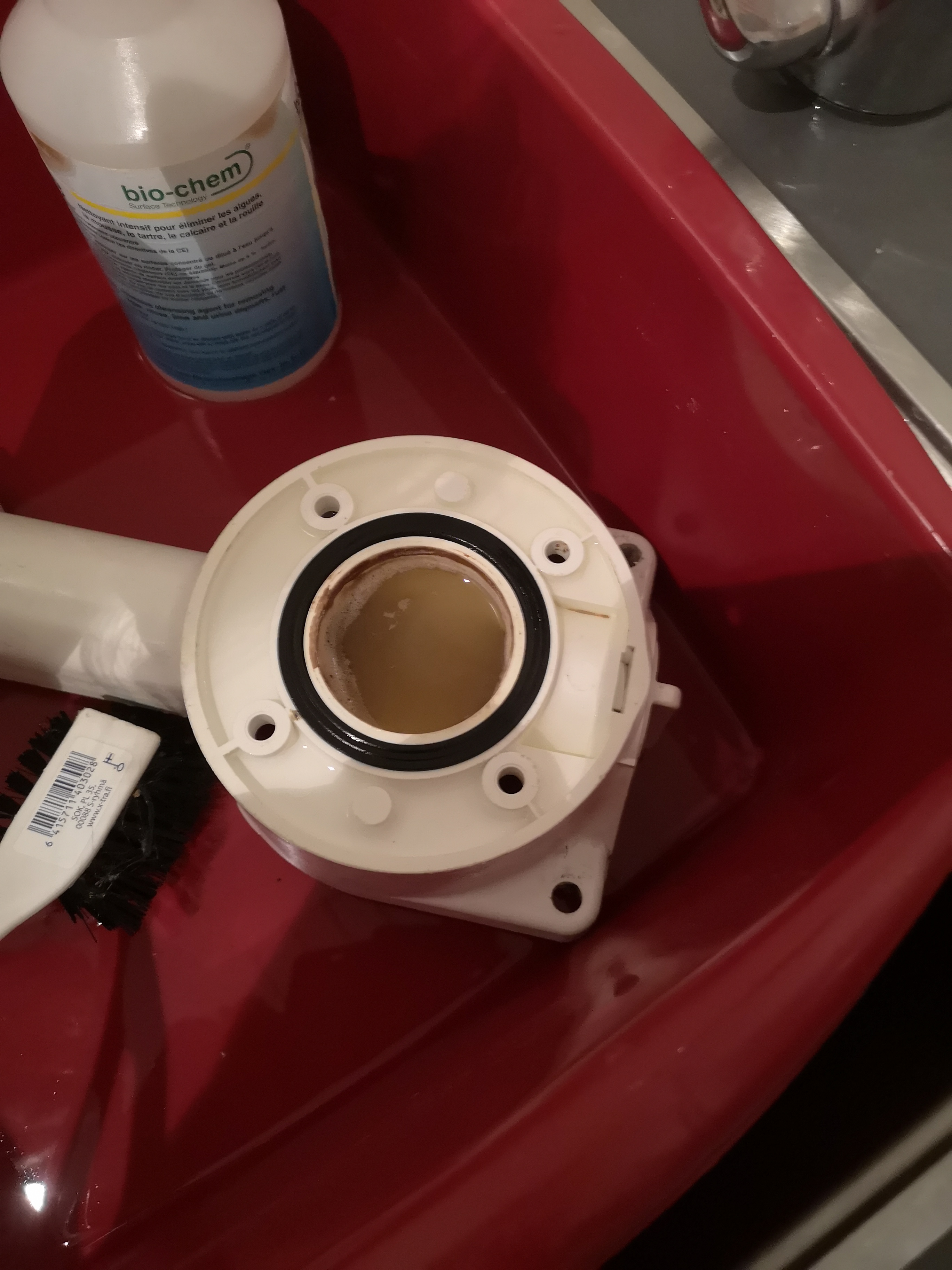 Viime kesäisten toiletti-selkkausten vuoksi päätettiin kuluvat osat vaihtaa kahdeksan vuotta vanhasta toaletista. Kumihan on tietysti kuluvaa… Ihan siinä samalla pääsi pytty pytsattavaksi ja liotettavaksi kotioloihin ja tietystikin nyt nuo letkut kannattaa ihan samalla uusia. Petrillä tässäkin puuhaa – irroittamiseen kommentoin, että tuon kerran asentaneena muistelen ettei se ollut ihan mutkatonta. Joitakin asioita sitä vuosien jälkeenkin muistaa kirkkaasti. Nyt kuitenkin, ihan samalla, virtsakivetön, ehtakuminen ja uusiputkinen pytty paikoillaan.