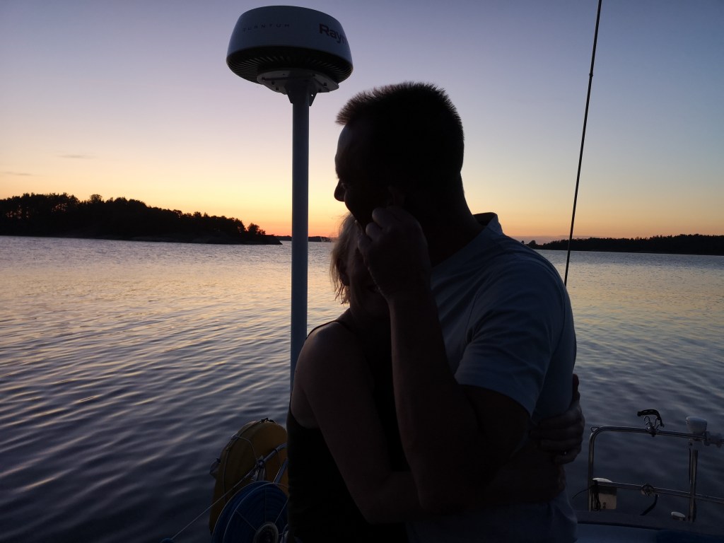 Lauantaina piti olla ihan vaan muutama pikku homma edessä ennen merelle lähtöä. Mikään ei kuitenkaan tänä vuonna ole mennyt helpolla niin miksi tämäkään. Lähdön hetkellä nimittäin jätti Lombardini hyrähtämättä… meillä oli täysin mykkä kone! Pähkäilimme ja yritimme startata kaapelilla suoraa starttimoottorista sekä koputtelimme starttia ja solenoidia. Onneksi saimme numero tiedustelun perusteella kiinni aivan mahtavan miehen Liedon Moottori ja Vaihteisto Oy:stä. Meille ennestään tuntematon mies jaksoi väsymättä neuvoa ja oli myös kiinnostunut lopputuloksesta. Lopulta kojetaulun herätevirran ja solenoidin navan yhdistäminen sai koneen hyrähtämään. Meillä on starttinappula kaput, onneksi, eikä starttimoottori. Hetken jo mietin millainen juhannus kotona vietettynä!