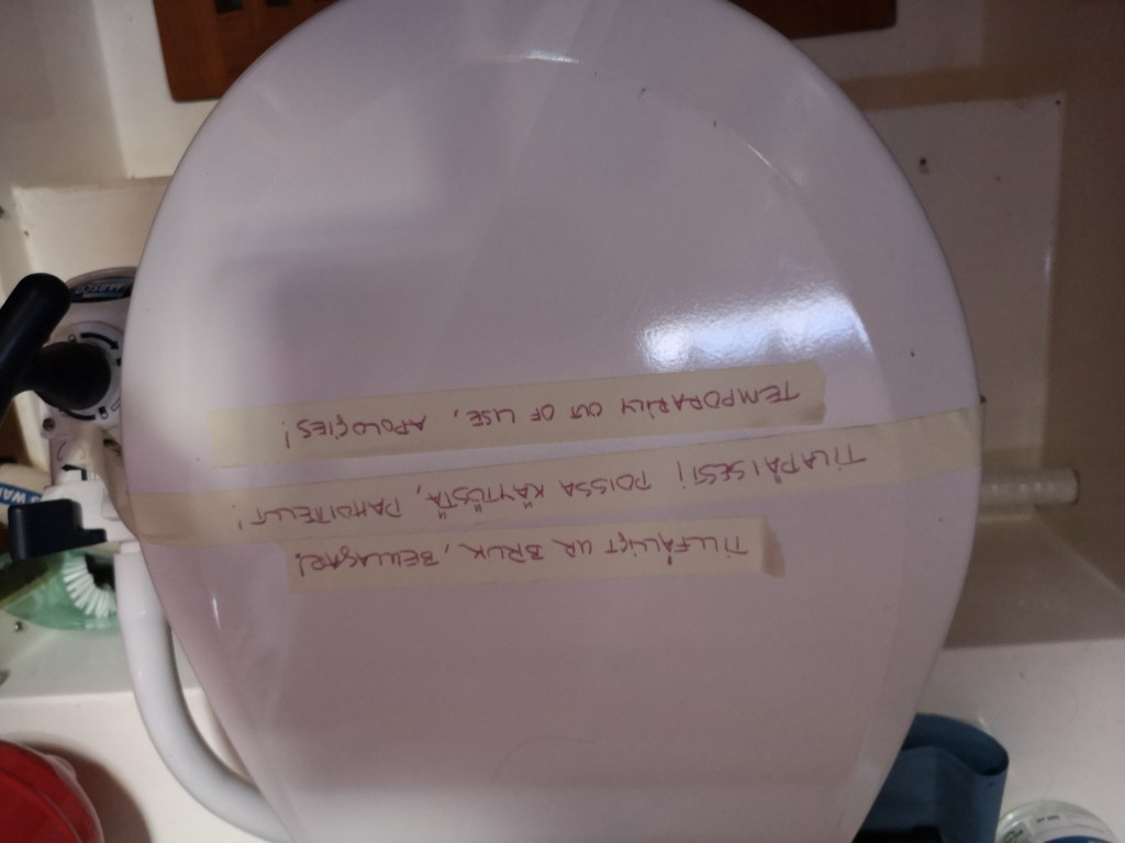 Viime kesäisten toiletti-selkkausten vuoksi päätettiin kuluvat osat vaihtaa kahdeksan vuotta vanhasta toaletista. Kumihan on tietysti kuluvaa… Ihan siinä samalla pääsi pytty pytsattavaksi ja liotettavaksi kotioloihin ja tietystikin nyt nuo letkut kannattaa ihan samalla uusia. Petrillä tässäkin puuhaa – irroittamiseen kommentoin, että tuon kerran asentaneena muistelen ettei se ollut ihan mutkatonta. Joitakin asioita sitä vuosien jälkeenkin muistaa kirkkaasti. Nyt kuitenkin, ihan samalla, virtsakivetön, ehtakuminen ja uusiputkinen pytty paikoillaan.